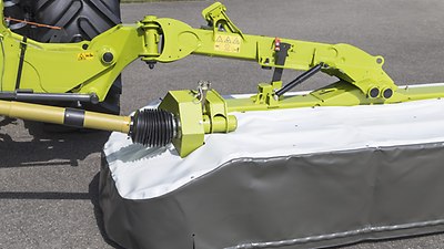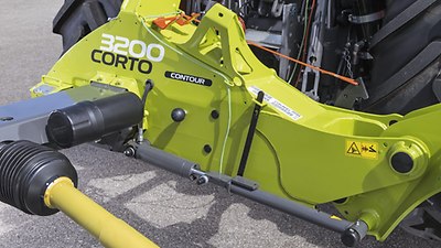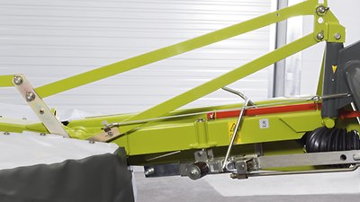 Das Mähwerk wird mithilfe eines Doppelkolbenzylinders eingeklappt und dabei vor der Endablage sanft gebremst. Auf diese Weise ist auch in hügeligem Gelände ein sicherer Klappvorgang gewährleistet.