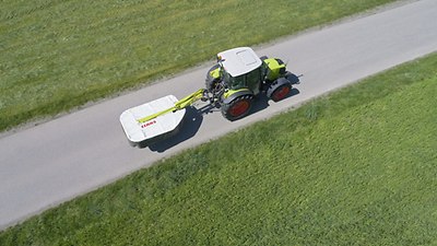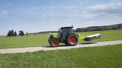 Die 120°-Transportposition und der nahe am Traktor liegende Schwerpunkt sorgen für höchste Stabilität und eine geringe Transporthöhe. Durch die angewinkelte Stellung haben Sie über die Außenspiegel freie Sicht nach hinten. Die Hinterachse wird gleichmäßig belastet, was ein Aufschaukeln während der Fahrt verhindert. So sind Sie auch auf der Straße sicher und wendig unterwegs.