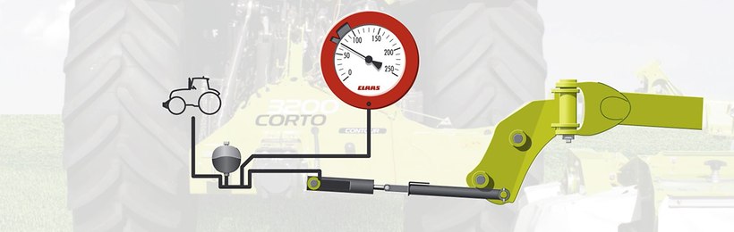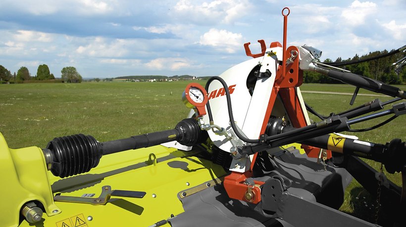 Bei CLAAS sind alle CONTOUR Heckmähwerke serienmäßig mit der hydropneumatischen Entlastung ACTIVE FLOAT ausgestattet. Für Frontmähwerke ist ACTIVE FLOAT optional erhältlich. Die Entlastung überträgt das Gewicht des Mähwerks von der Grasnarbe auf den Traktor. Zudem werden die Seitenzugkräfte am Hang reduziert, was den Fahrkomfort und die Arbeitsqualität erhöht.