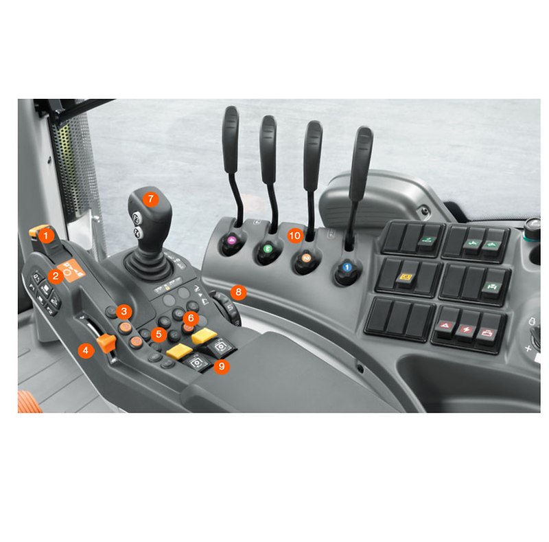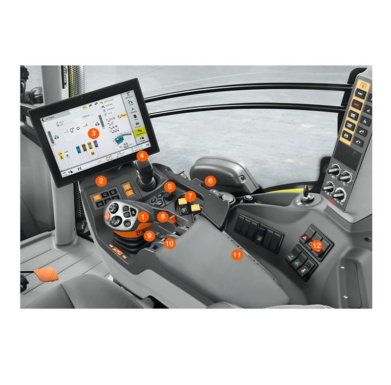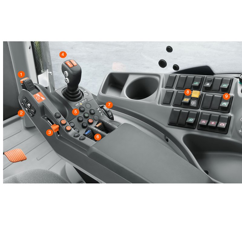 Sie bietet beste Ergonomie und ist Dreh- und Angelpunkt für entspanntes, effektives Arbeiten. Sie ist das Ergebnis umfangreicher Analysen der Bedienabläufe in der Kabine. Häufig benötigte Funktionen finden sich auf der Multifunktionsarmlehne, seltener benötigte Funktionen liegen auf der rechten Seitenkonsole.